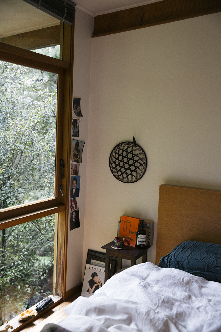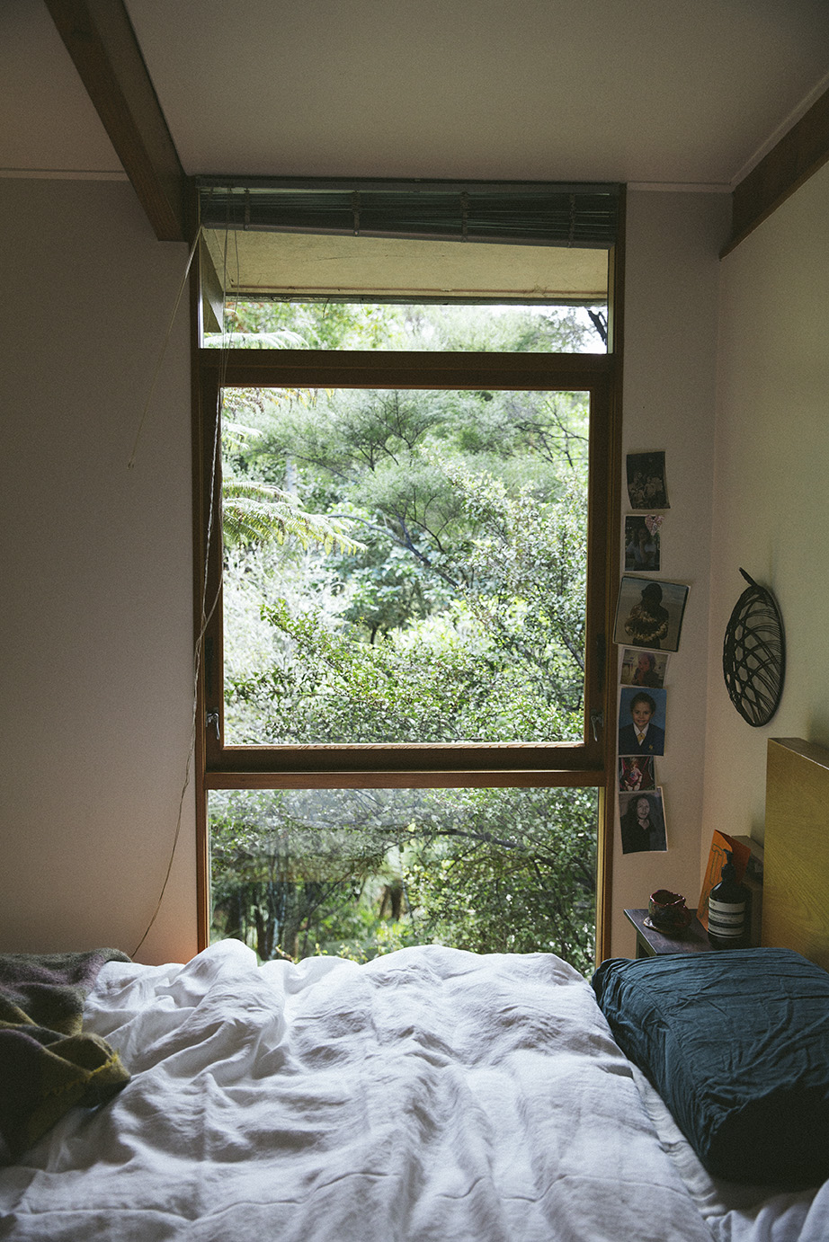 I enjoy how Japanese the house feels, I like that the views are framed by beautiful wooden window frames, I like the shoji screens, I love the cedar cladding and I love looking through the canopy when the sun sets and again at day break. I like the stillness. I like the home's humility and how it sits within the surrounding bush scape. linen bedding setMahsa featured above with her 100% linen duvet cover in White
